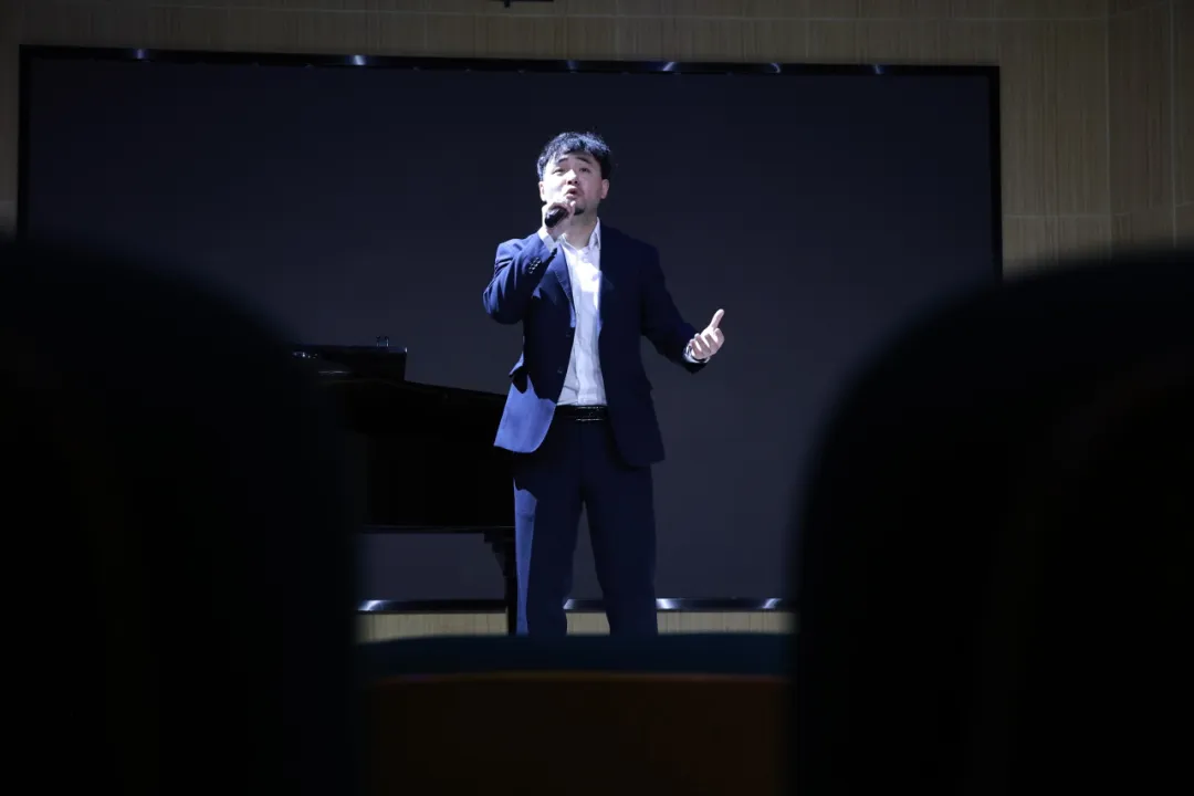 同样田琛副教授指导的《不答应也得答应》(选自印青创作的民族歌剧《运河谣》)由2023级表演专业(专升本)班的俄木木牛同学倾情演绎,以其浑厚的嗓音,自信的台风赢得了观众的热烈掌声。