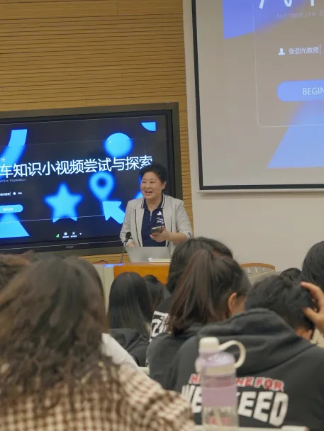 在讲座临近尾声之际,张劲光教授表达了对数字媒体与表演学院学子们对汽车真挚的热爱的极大认可,就汽车相关知识与同学们进行了积极的互动与探讨,并对同学们提出的问题一一进行了耐心细致的解答。