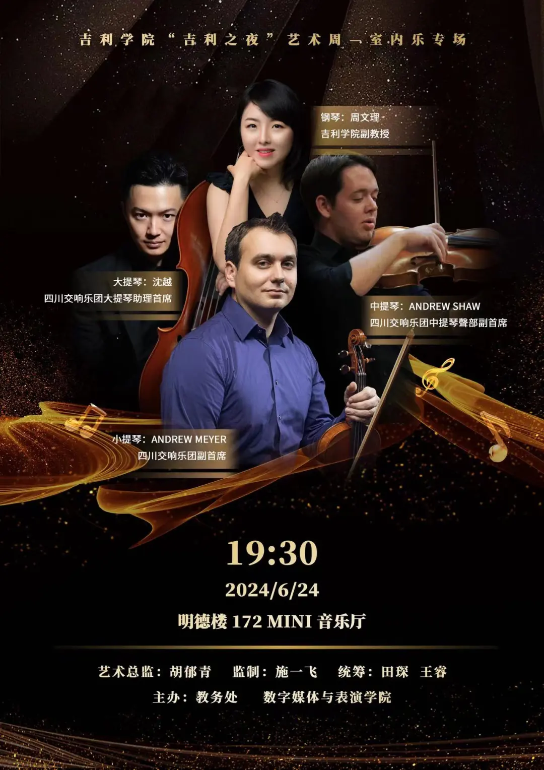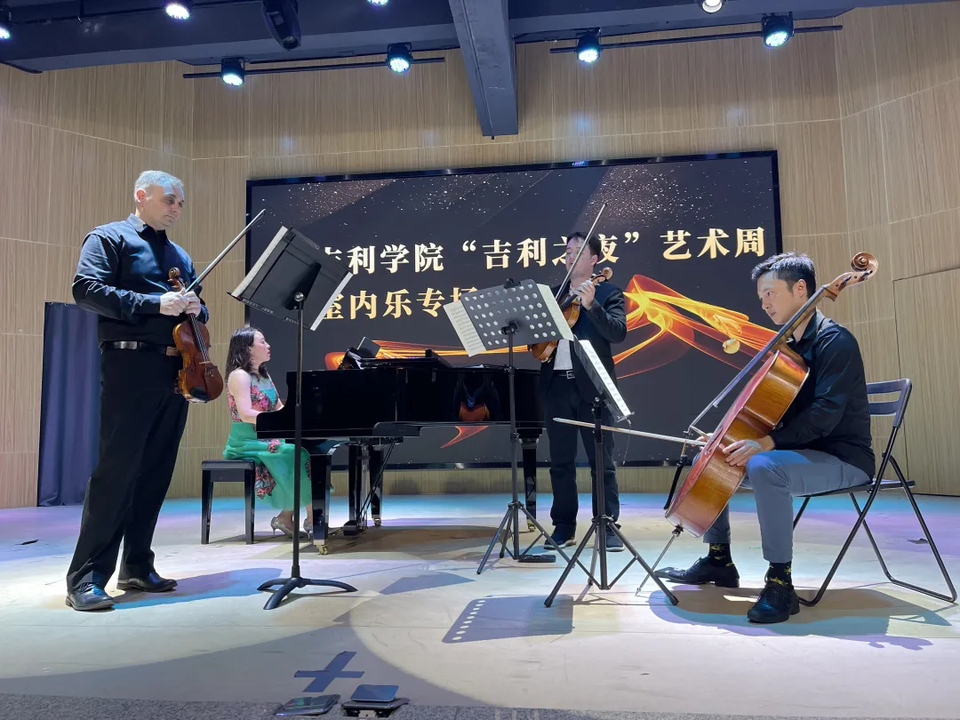 吉利学院教务处施一飞处长、招釆处王珏翎处长、数字媒体与表演学院胡郁青院长光临现场聆听音乐会,部分师生到场聆听。