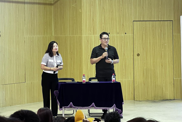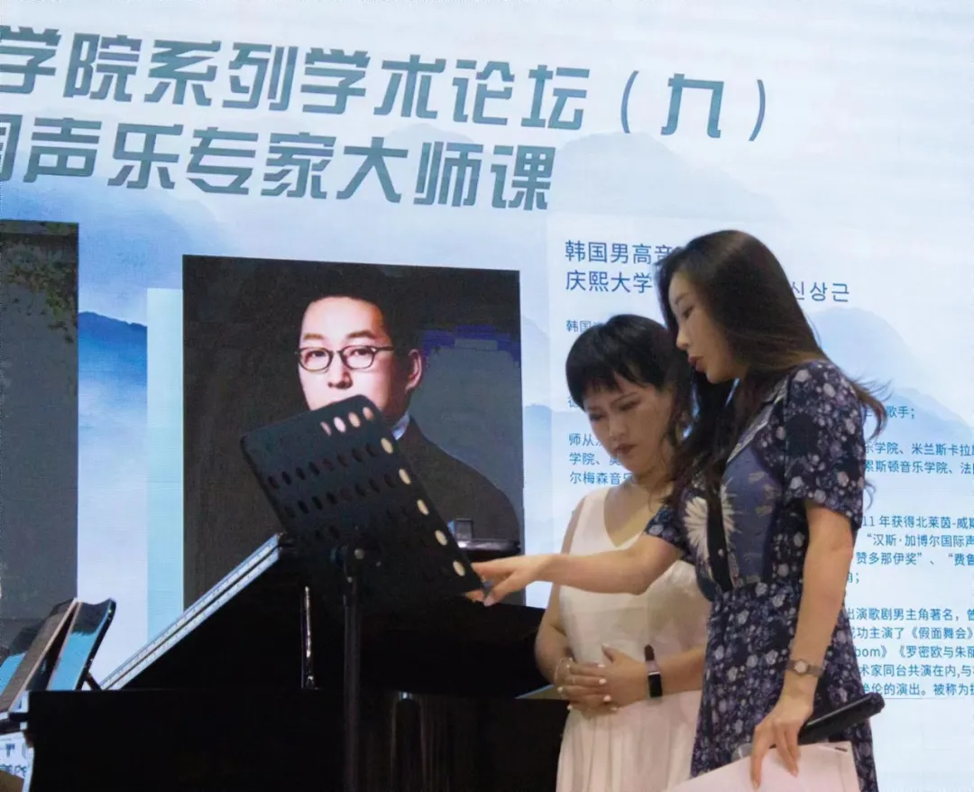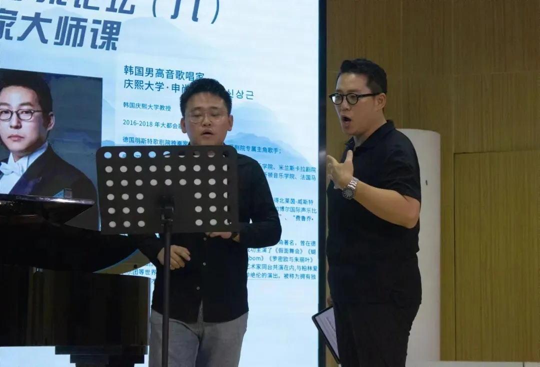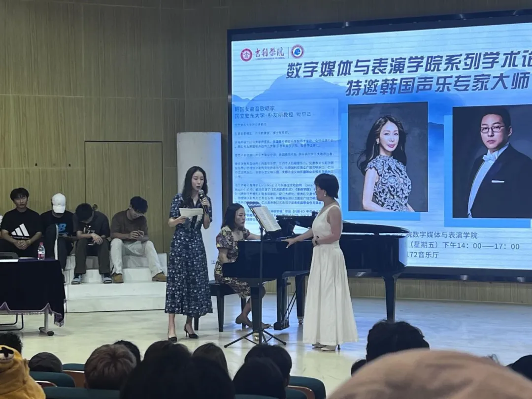 9月8日下午2:00,明德楼172音乐厅座无虚席,汇聚了满心期待的学子和老师们。“数字创新 唱响未来”系列学术论坛之九顺利开讲,本次讲座特邀韩国女高音歌唱家朴有丽教授和韩国男高音歌唱家申尚根教授来院作讲座,旨在为同学们搭建一个与国际音乐教育大师面对面交流的机会。
