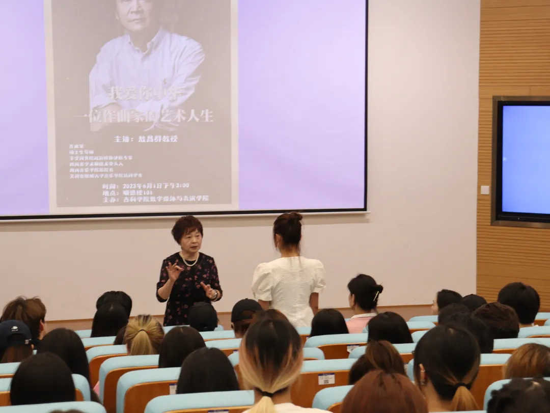 本次讲座以“《我爱你中华》——一位作曲家的艺术人生”为题,敖昌群和张莉娟教授向师生们讲述了他们自己的音乐人生,分享了自己音乐创作生涯中的优秀作品,畅谈创作的心路历程。