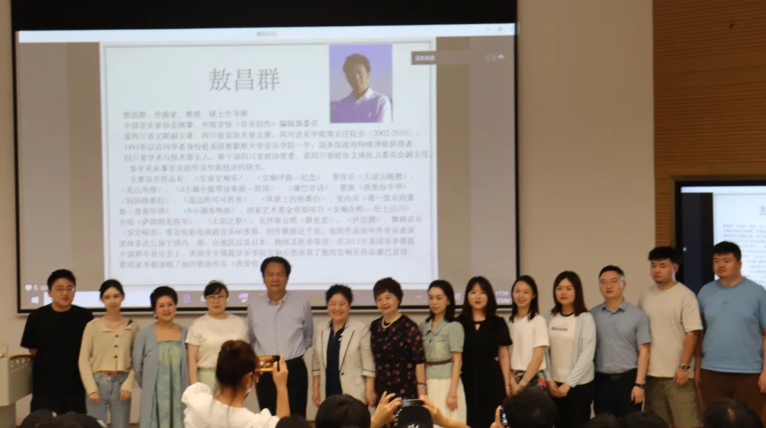 6月1日下午3:00,著名作曲家、硕士生导师,原四川省文联副主席、四川省音协名誉主席,四川音乐学院前院长,国务院政府特殊津贴获得者敖昌群教授及四川音乐学院声乐系张莉娟教授应邀来我院开展学术讲座。