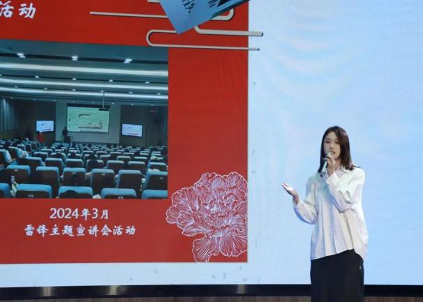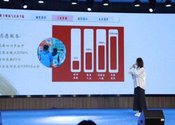 我院团总支学生会主席吴佳怡作为此次答辩宣讲人,以“树莓之花”的故事为在场观众展现了学子们的成长之路。媒介技术让相隔千里的人“在一起”,艺术和网络的结合便是万物互联的表达。从制度建设到特色活动,从荣誉收获到未来期许,她说:“树莓们一直在用自己的方式向下扎根,向春出发!”